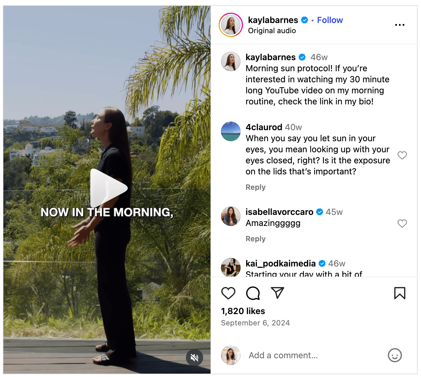 But it’s not just mood, either. Sun exposure is linked to higher energy, improved cognitive function, and overall life satisfaction. According to Dr. Mark Hyman, getting sunlight within the first hour of waking up is key to improving your mood, balancing stress hormones, and boosting serotonin and melatonin for better sleep and emotional well-being. Andrew Huberman, Kayla Barnes Lentz, and Gary Brecka all recommend getting sunlight in the morning, too.